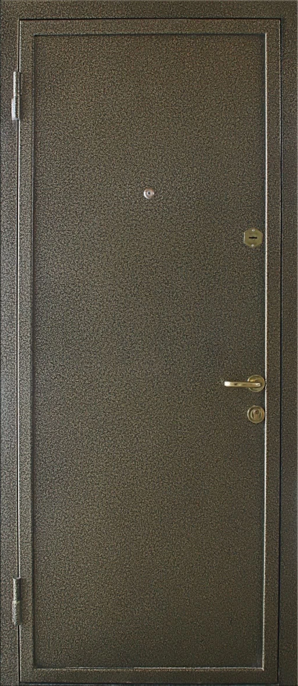 Порошково-полимерное напыление может быть глянцевым и матовым. Может быть использовано как для квартирных, так и для уличных дверей.