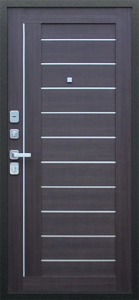 Надежная входная Дверь Соло орех рифленый премиум класса по цене 35 531 руб. Большая толщина стали защитит от проникновения в ваш дом, квартиру или коттедж. Используется очень качественная фурнитура: замки, цилиндры, ручки, защелки. Покрытие и отделка двери изготовлено под внимательным контролем производителя. Дверь имеет долгий срок службы и гарантию.
