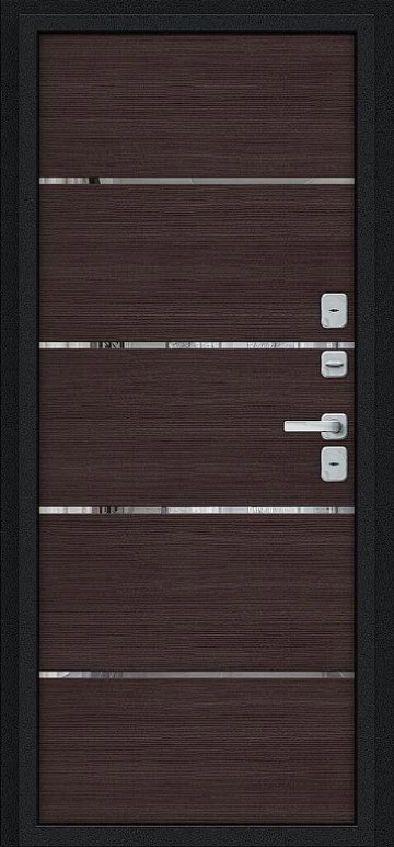 Надежная входная Дверь Браво Thermo Лайн/BChrome Букле черное/Wenge Melinga премиум класса по цене 46 081 руб. Большая толщина стали защитит от проникновения в ваш дом, квартиру или коттедж. Используется очень качественная фурнитура: замки, цилиндры, ручки, защелки. Покрытие и отделка двери изготовлено под внимательным контролем производителя. Дверь имеет долгий срок службы и гарантию.