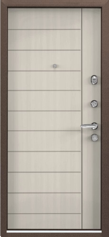 Надежная входная Дверь Цербер 3К(Чёрная) Горизонт Латте(Сменная панель) премиум класса по цене 42 331 руб. Большая толщина стали защитит от проникновения в ваш дом, квартиру или коттедж. Используется очень качественная фурнитура: замки, цилиндры, ручки, защелки. Покрытие и отделка двери изготовлено под внимательным контролем производителя. Дверь имеет долгий срок службы и гарантию.